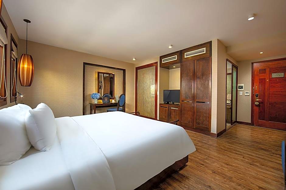 These glamorous suites offer views of the city through open windows. With a work desk and wooden flooring, the air-conditioned rooms also come attached with glass wall bathrooms. Private bathrooms are equipped with a bathtub and a separate standing shower.